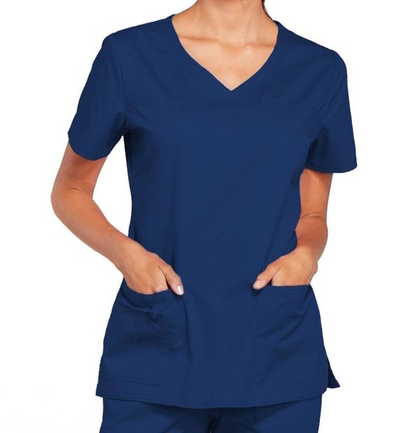 Μπλούζα γυναικεία stretch με ελαφριά σταυρωτή λαιμόκοψη και δύο μπροστινές τσέπες.