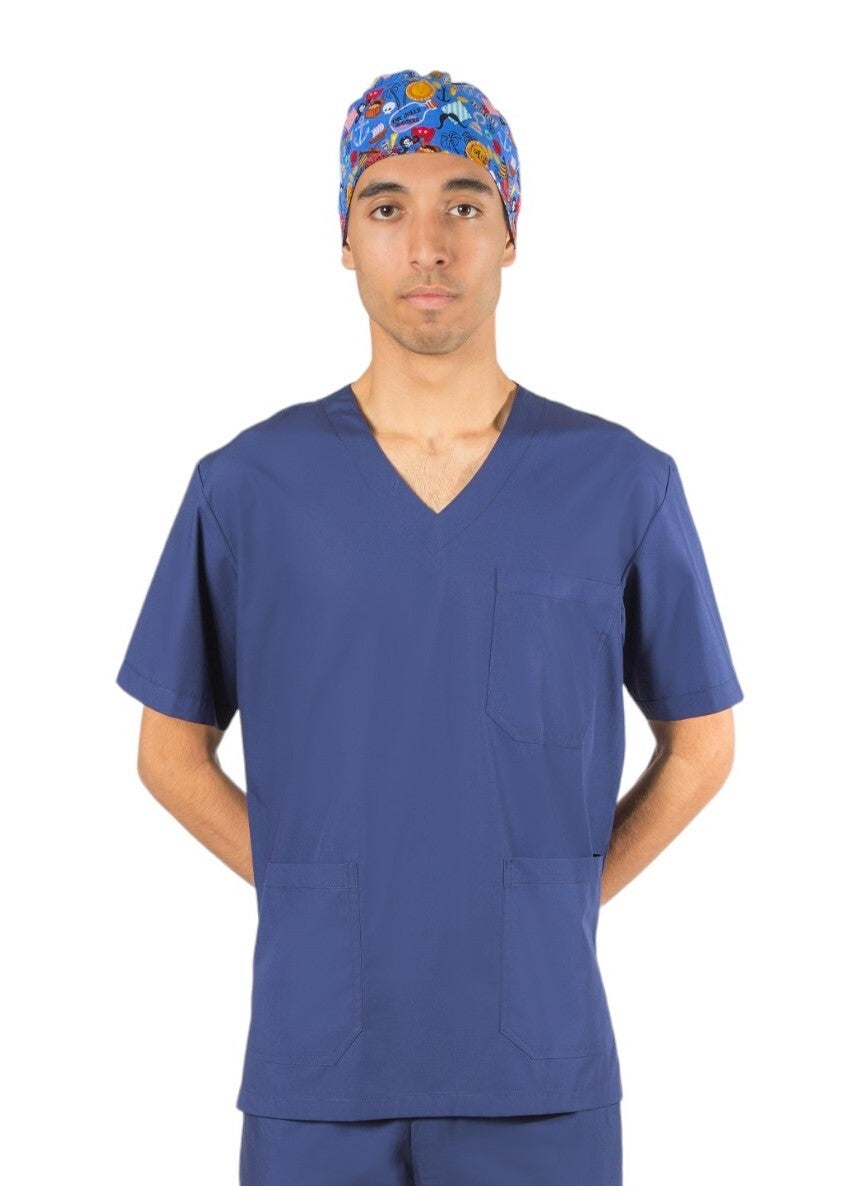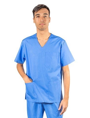 -Μπλούζα τύπου V με κοντό μανίκι -Δυο μεγάλες τσέπες στο κάτω μέρος και μια πάνω -Πενσάκια στο στήθος για καλύτερη εφαρμογή -Υφασμα ποπλίνα 125γρ-180γρ. -Σύνθεση 100% βαμβάκι
