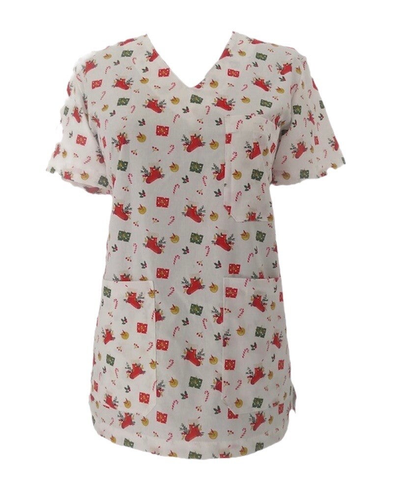 Ιδανική για παιδίατρους, νοσηλευτές/νοσηλεύτριες, αλλά και για κτηνιάτρους, αυτή η χριστουγεννιάτικη μπλούζα δημιουργεί χαρούμενη και φιλική ατμόσφαιρα για παιδιά και πελάτες.